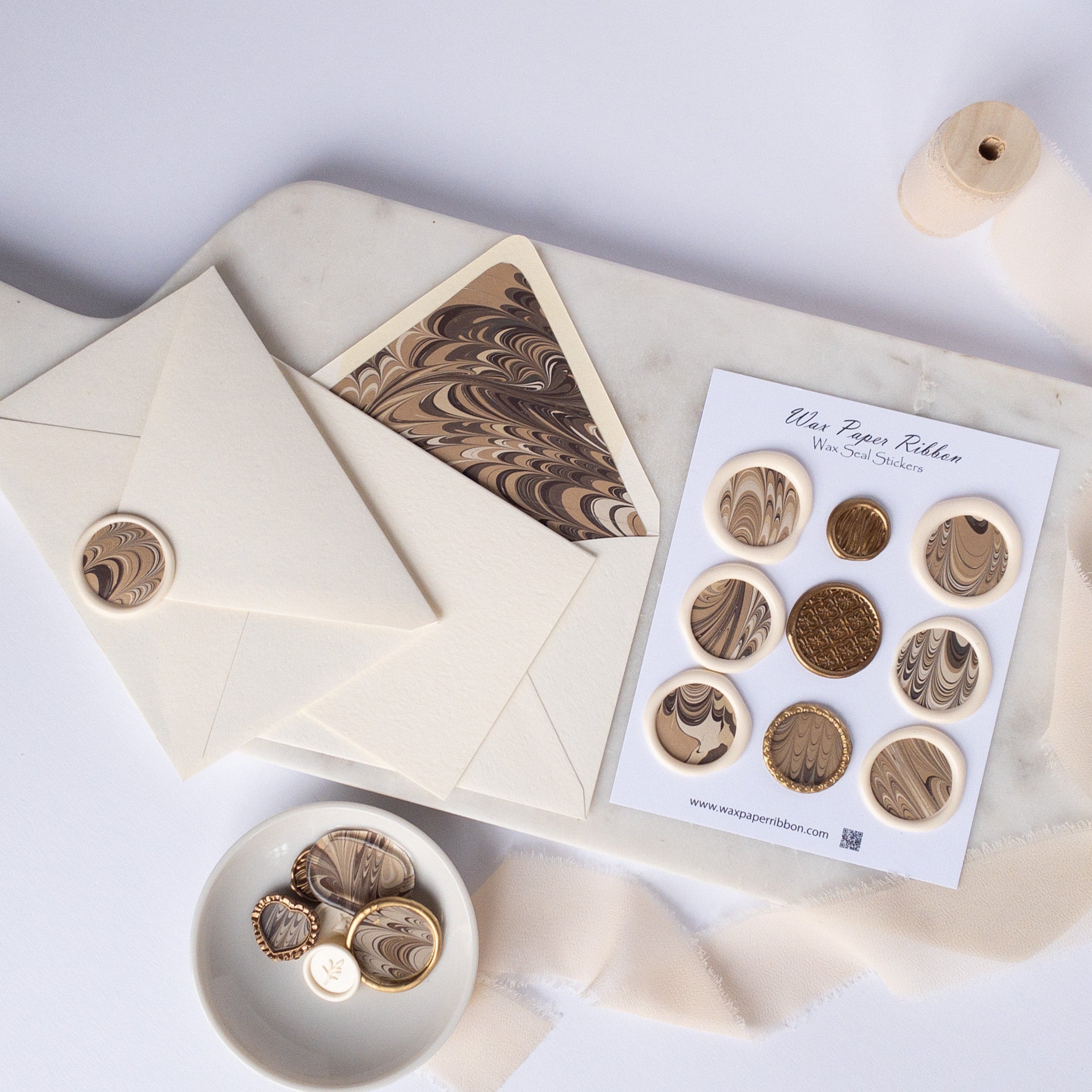 Green and Cream Marble - Notecard Set with Wax Seals