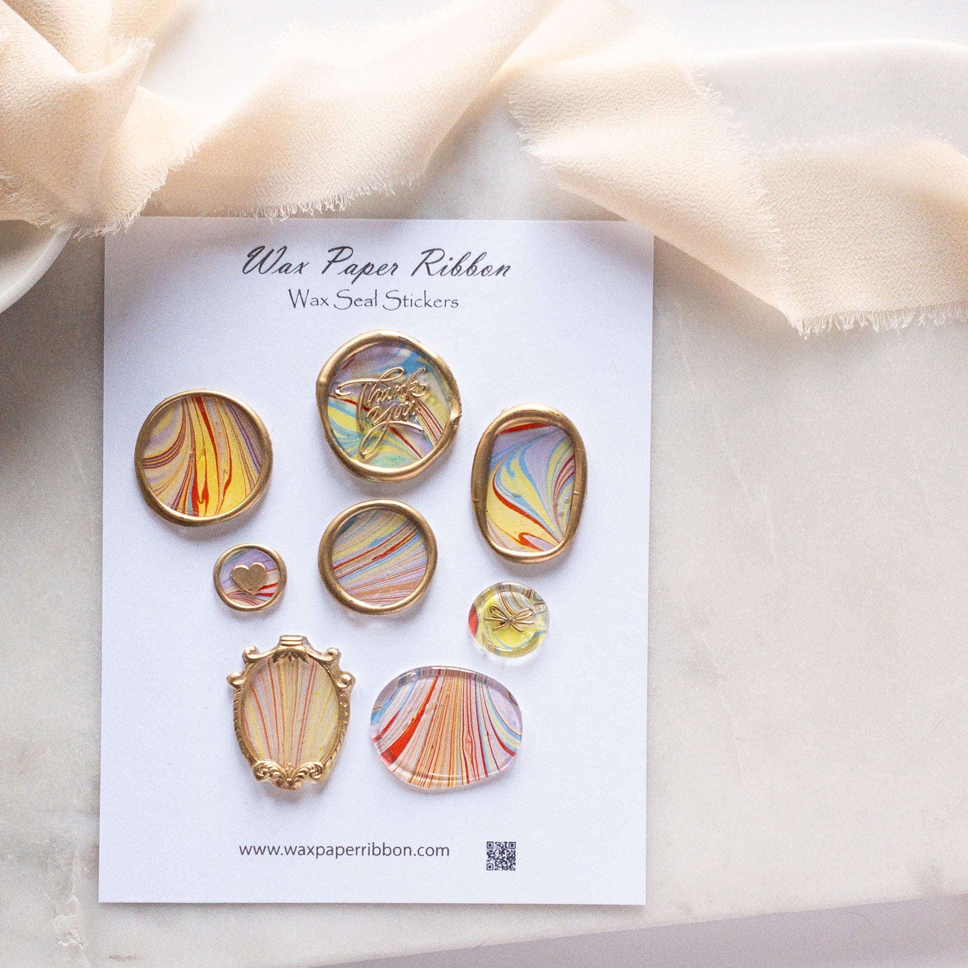 Add an elegant touch to your letters and invitations with this set of pink marbled paper clear glue seal collection.